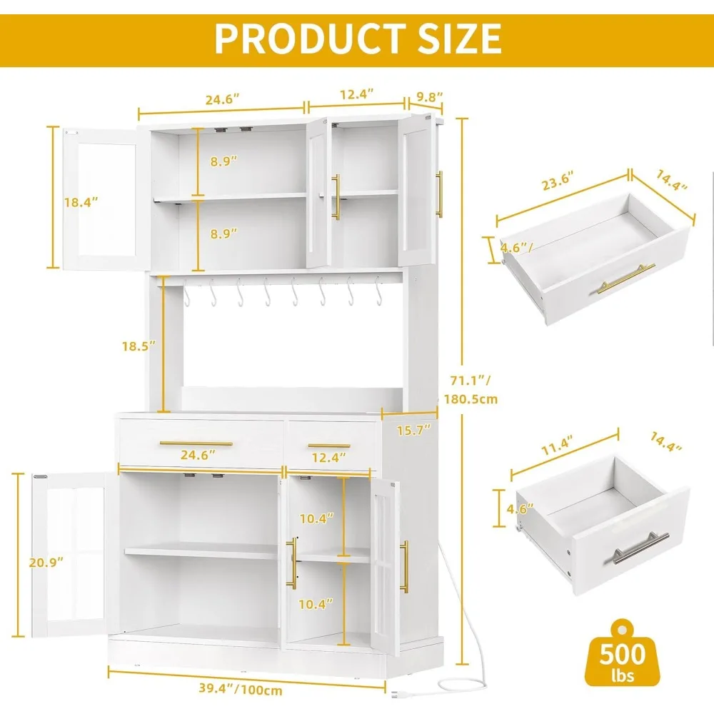 - Additional Power Outlets Design: Pantry storage cabinet equipped with practical power outlets, including 2 USB ports and 2 3-hole sockets. Easily charge your phone, tablet, or e-reader while using appliances like coffee makers, toasters, or microwaves.