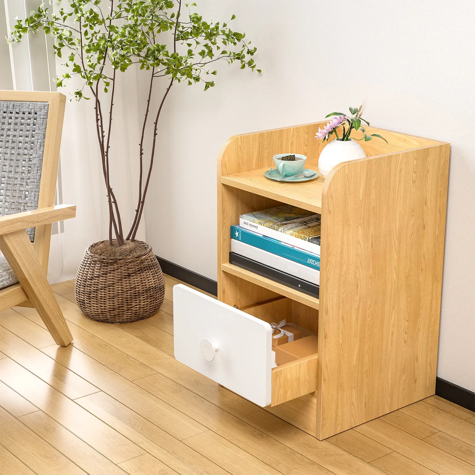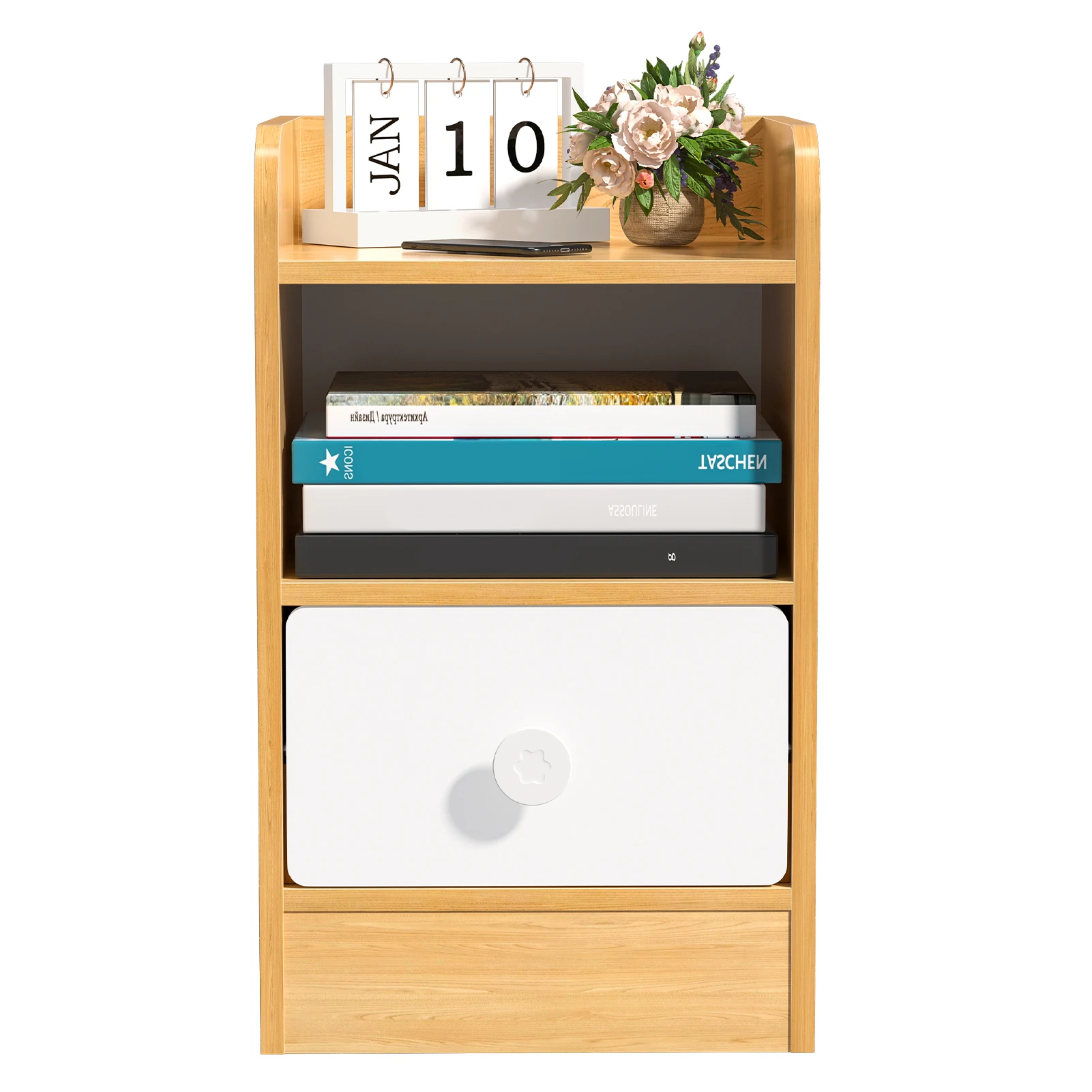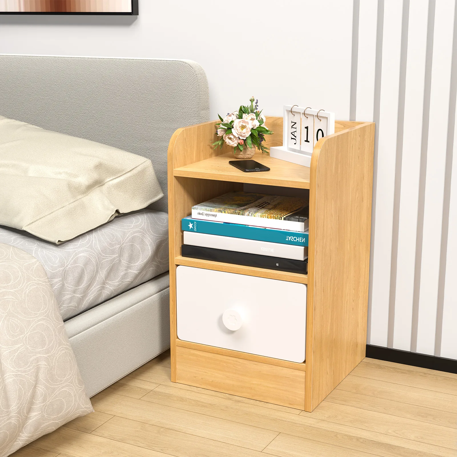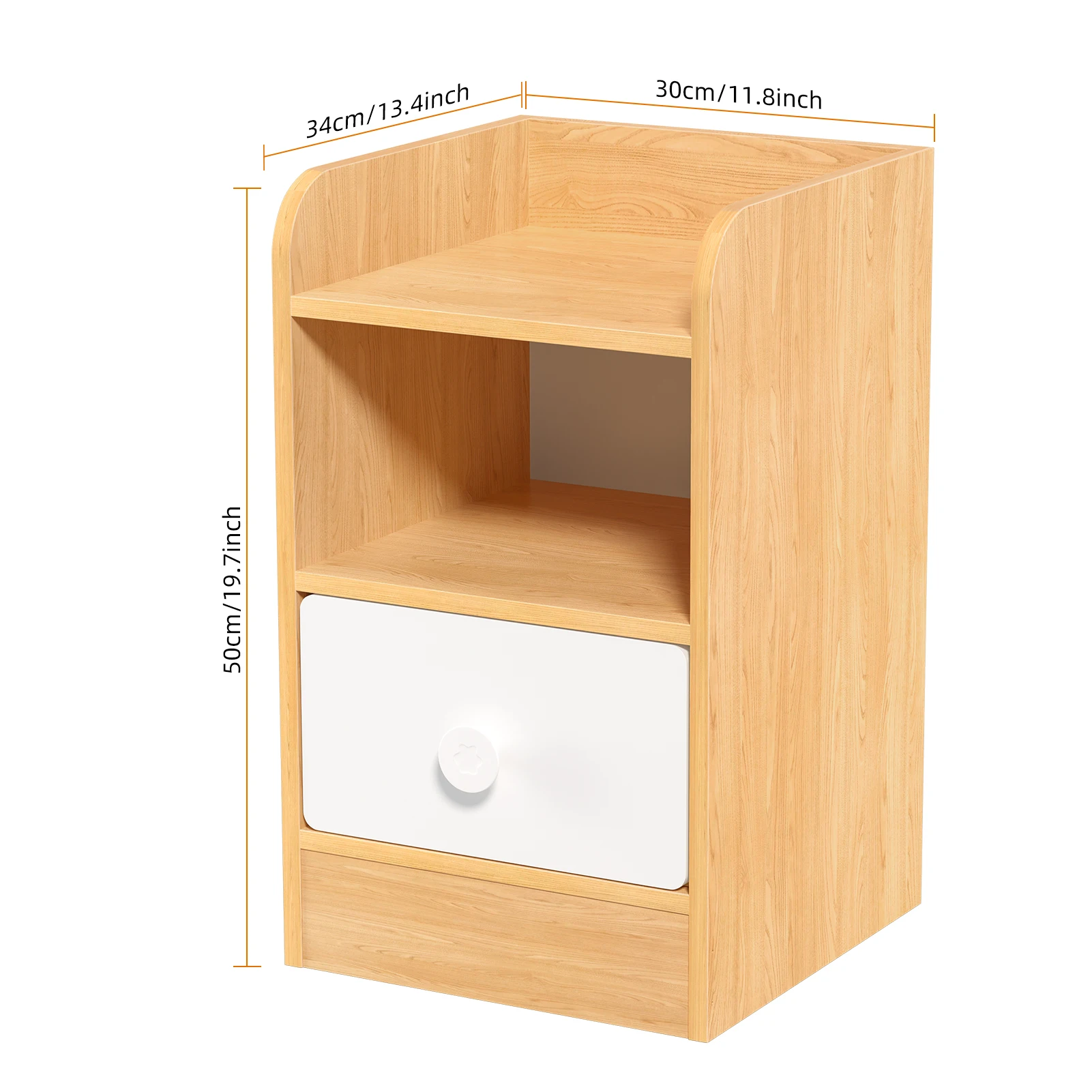 Wonderful Touch: Featuring wood and warm white splicing color design, the night table gives your room a wonderful touch and a sense of decoration.